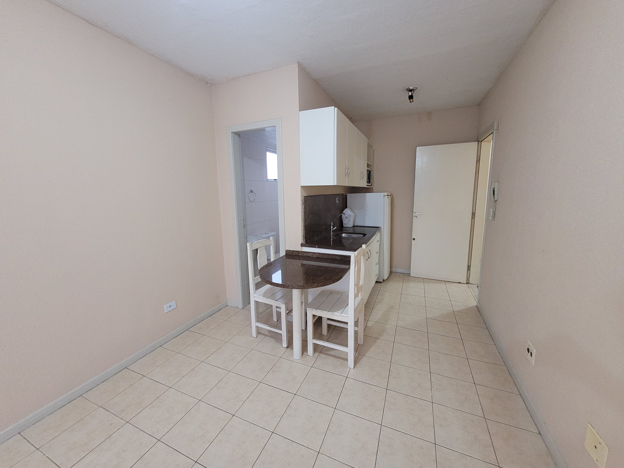 KITINETE CONJUGADA (N° 32 e 33), MOBILIADA COM 46,00m² 02 QUARTOS, SALA, SACADA COM VISTA PARA A PRAÇA CENTRAL, COZINHA, 02 BANHEIROS, LAVANDERIA E 01 VAGA DE GARAGEM NO SUBSOLO.